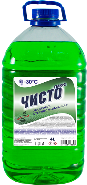 Жидкость стеклоомывающая низкозамерзающая Чисто плюс -30°С предназначена для чистки и предотвращения загрязнения и обледенения стекол автомобиля. Уникальная химическая формула позволяет эффективно удалять грязь, соль и нефтяную пленку. Безвредна для лакокрасочных покрытий и резиновых уплотнений. Не оставляет биологических загрязнений, бликов, масляных пятен и разводов на стекле, повышая уровень безопасности управления автомобилем.